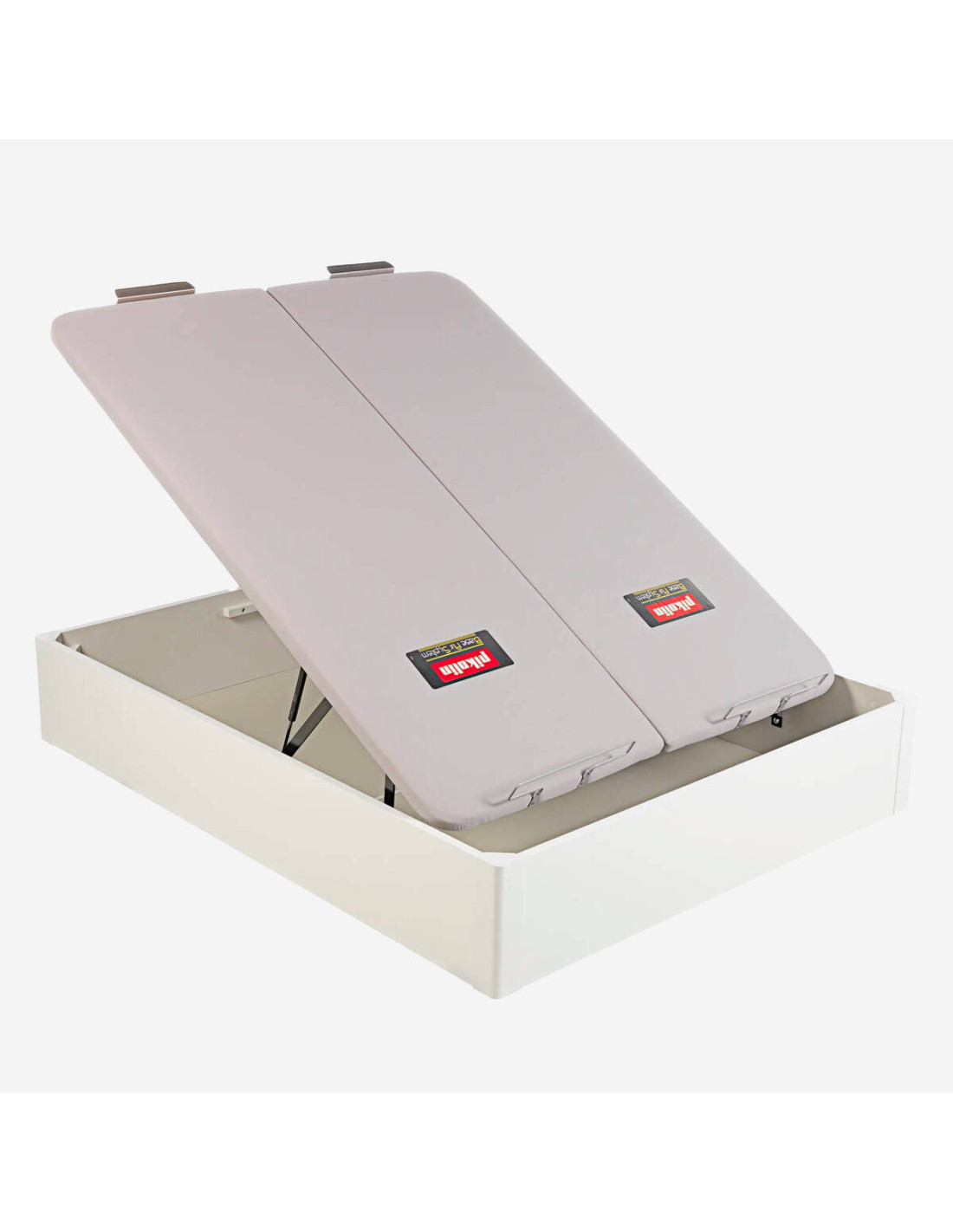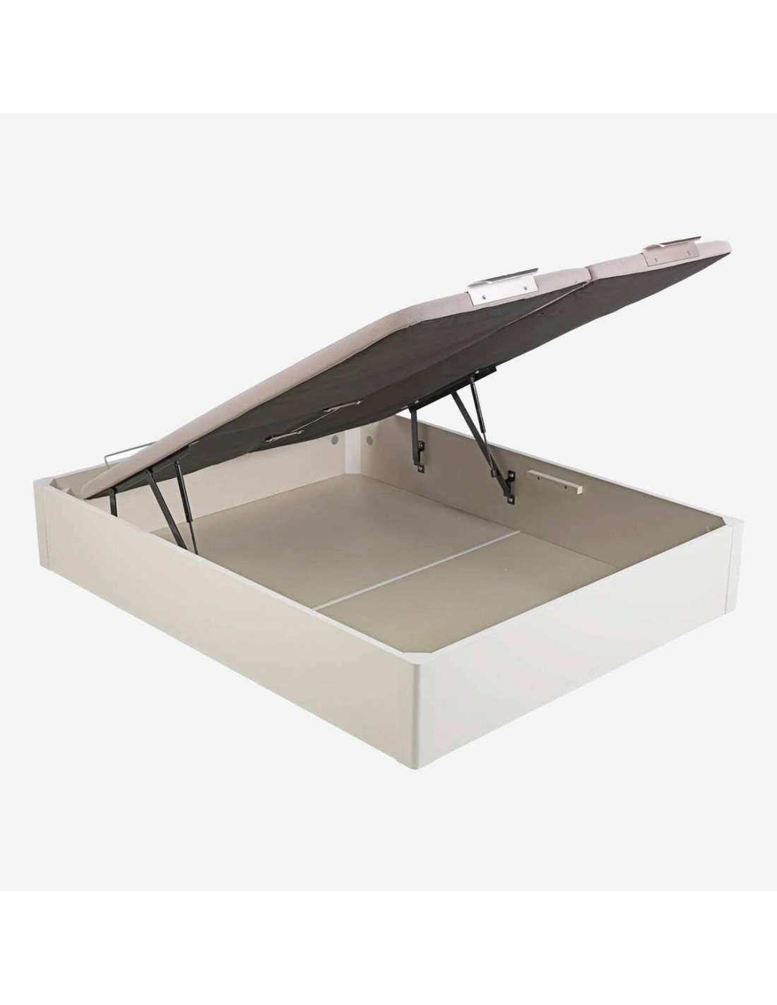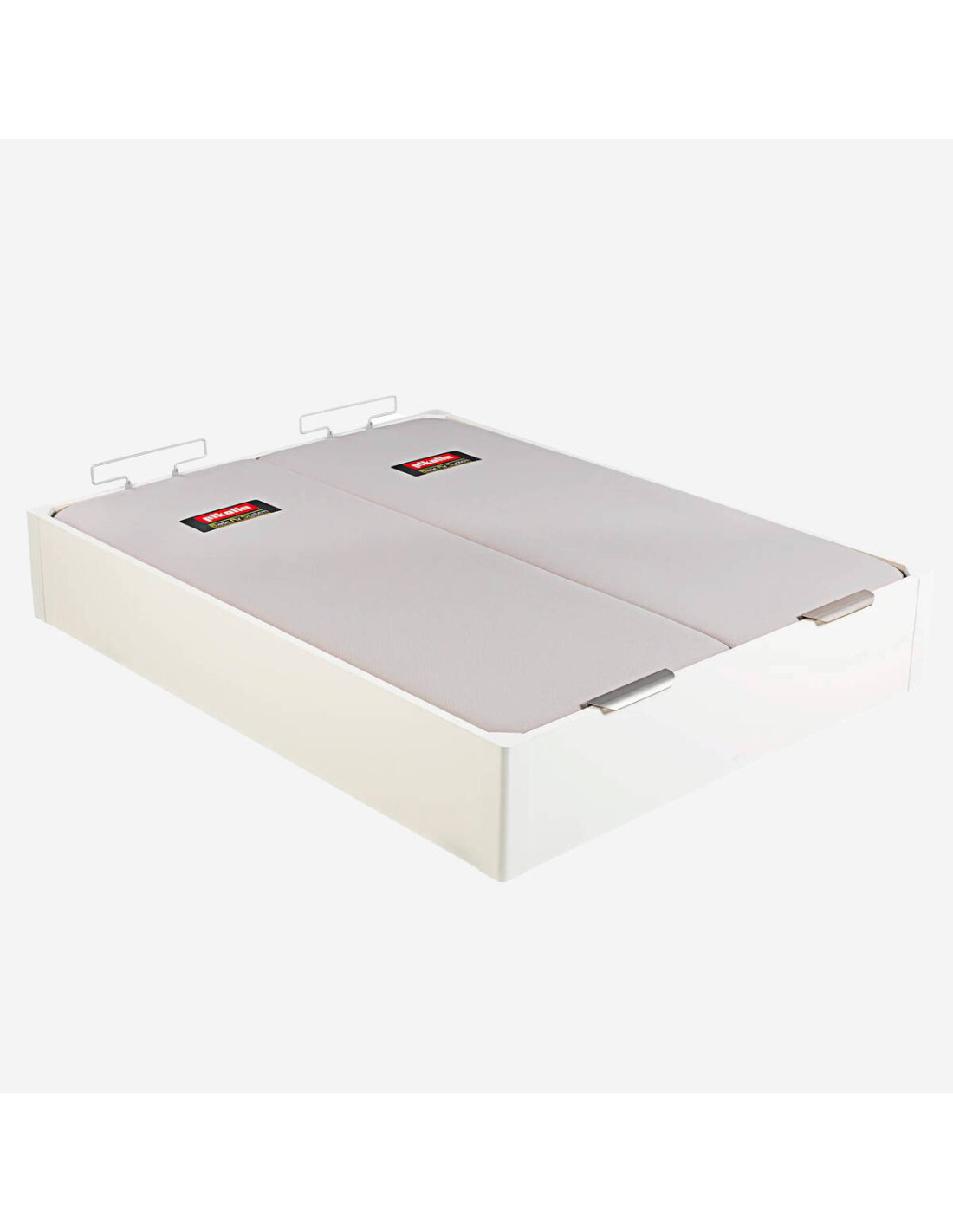 - Tecnología de la tapa: Estructura metálica de acero resistente reforzada con 5 travesaños transversales, equipada con tecnología Base Air System (B.A.S.), tirador de aluminio anodizado, arquillo sujeta colchón de acero en el cabecero, y sistema fácil de apertura frontal.