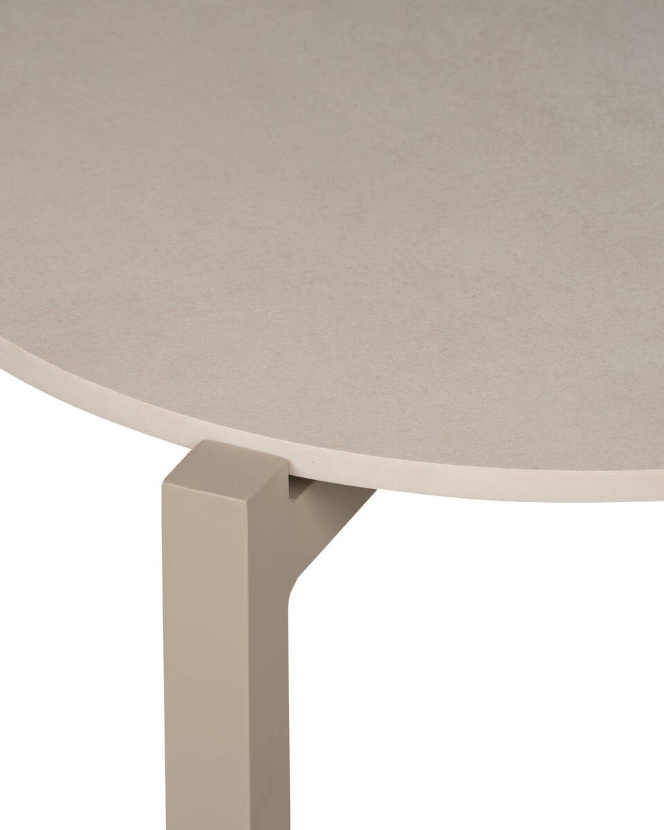 Adaptable a tu terraza bajo techo tanto como mesa de centro como mesa auxiliar. Tessa presenta un aspecto rectilíneo y moderno gracias a su estructura de patas de aluminio con una tapa de cerámica que presenta texturas únicas brindando gran resistencia y durabilidad.