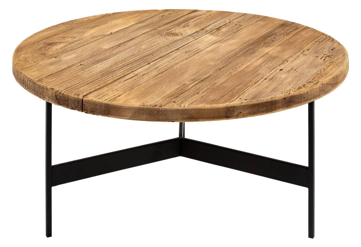 MESA DE CENTRO REDONDA PATAS NEGRA TAPA MADERA DE PINO RECICLADO 70x34cm