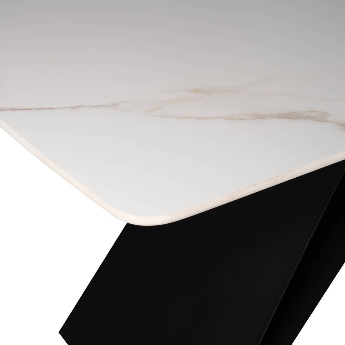 MESA ZENDRA TAPA DE CERÁMICA BLANCA Y PATAS EN ASPA NEGRO 180x90x75cm
