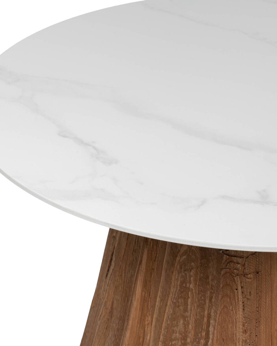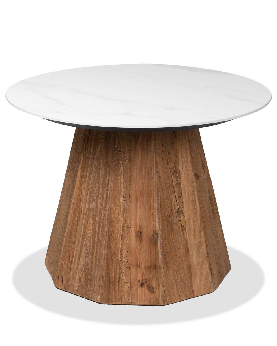 MESA DE CENTRO REDONDA MADERA DE PINO RECICLADO Y TAPA CERÁMICA 60x43.5cm