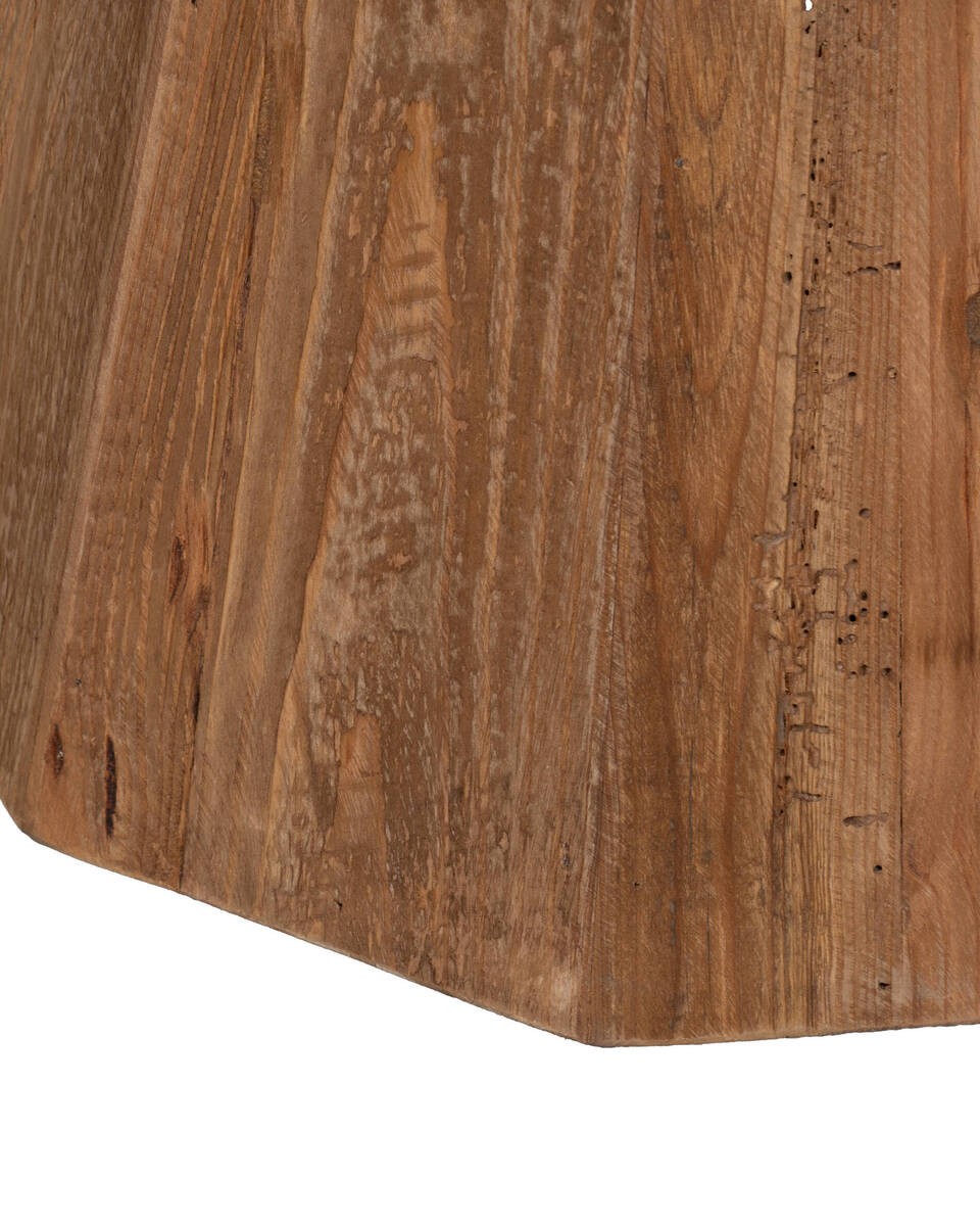 Tapa hecha de cerámica con terminaciones únicas en sus vetas. Su base está fabricada con pino reciclado en un acabado rectilíneo, también presentando vetas únicas al ser una madera de segunda oportunidad.