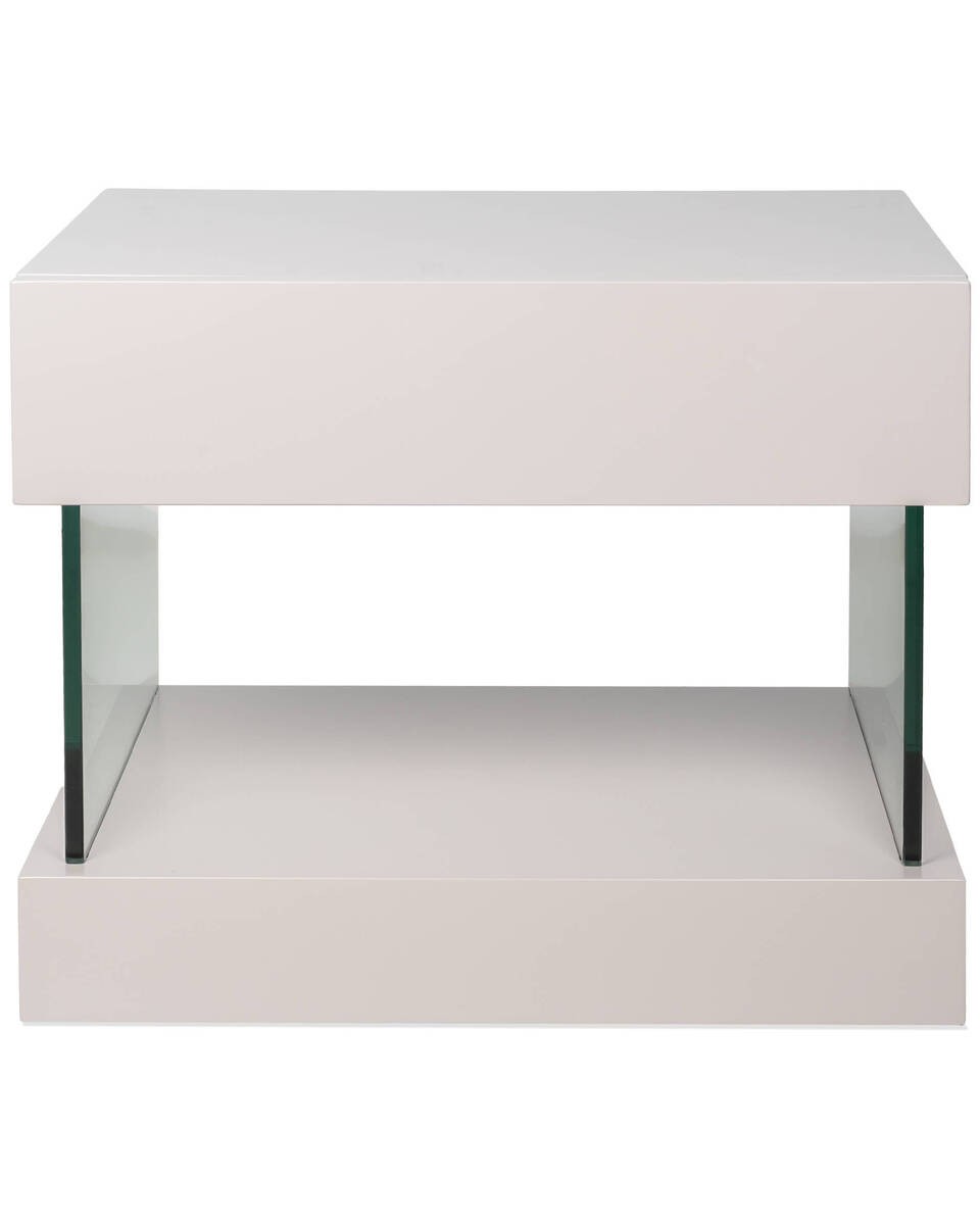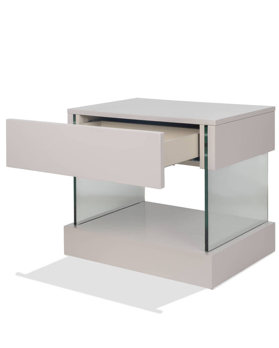 Mesita de noche Glass Avorio marfil mate con cristal templado