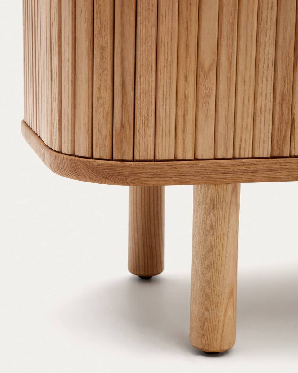 Ideal para agregar un toque moderno y natural a cualquier estancia de interior. Hecho en chapa de fresno con un diseño curvilíneo que presenta tonalidades y texturas únicas. Dispone de dos puertas correderas con cuatro estantes en su interior aprovechando al máximo su almacenamiento.