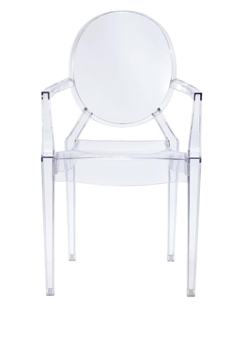 Pese a tener un aspecto frágil como el cristal, la silla Ghost está fabricada como una sola pieza en un resistente policarbonato transparente a prueba de golpes y rayados. Esa versatilidad para combinarse en ambientes contemporáneos manteniendo la esencia del diseño clásico del siglo XVI hace que sea todo un referente para los mejores interioristas del mundo.
