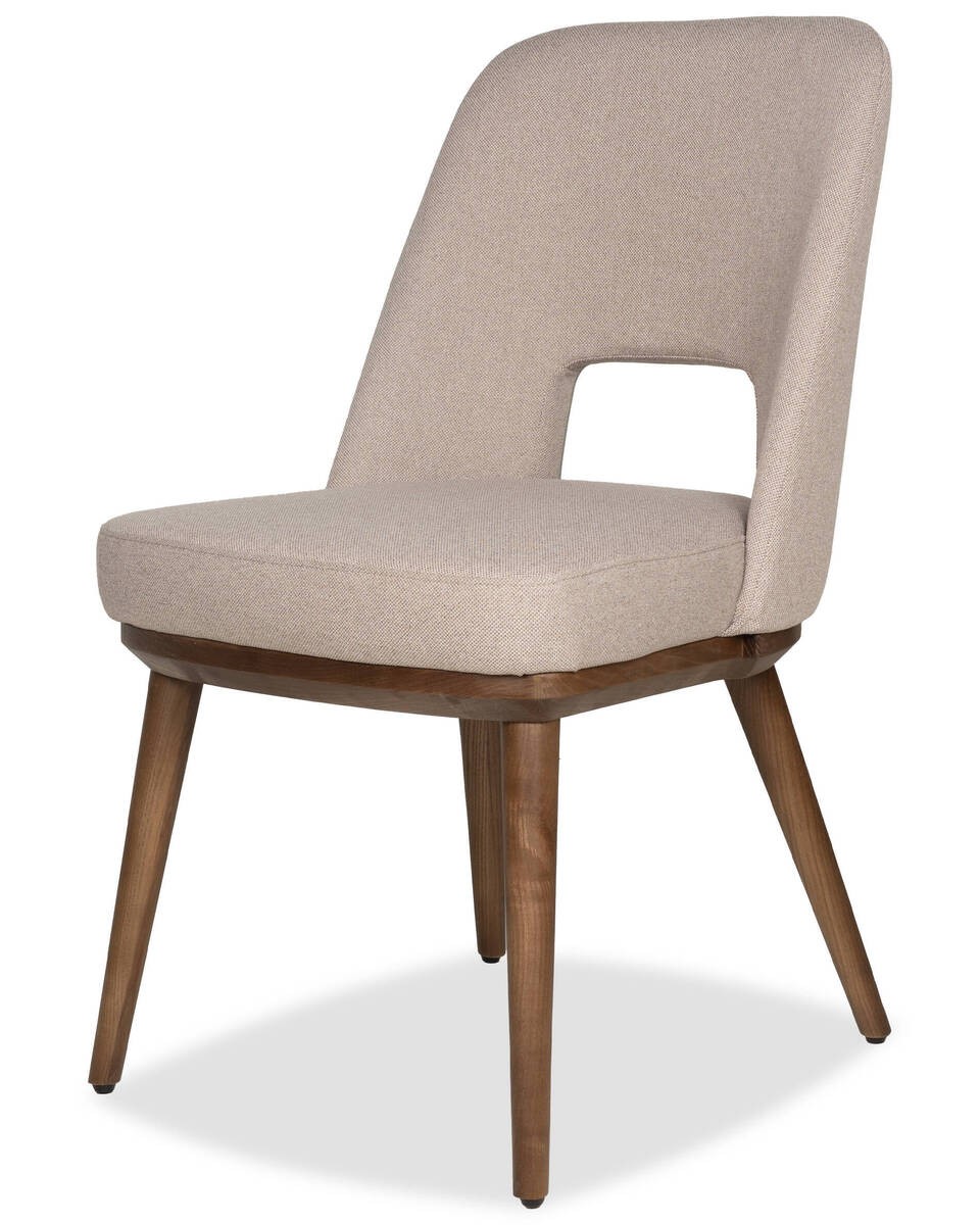 Ideal para completar comedores de estilo nórdico. Hecha en un mullido asiento y respaldo de poliéster de una pieza, unida a una estructura de cuatro patas de madera maciza de nogal.