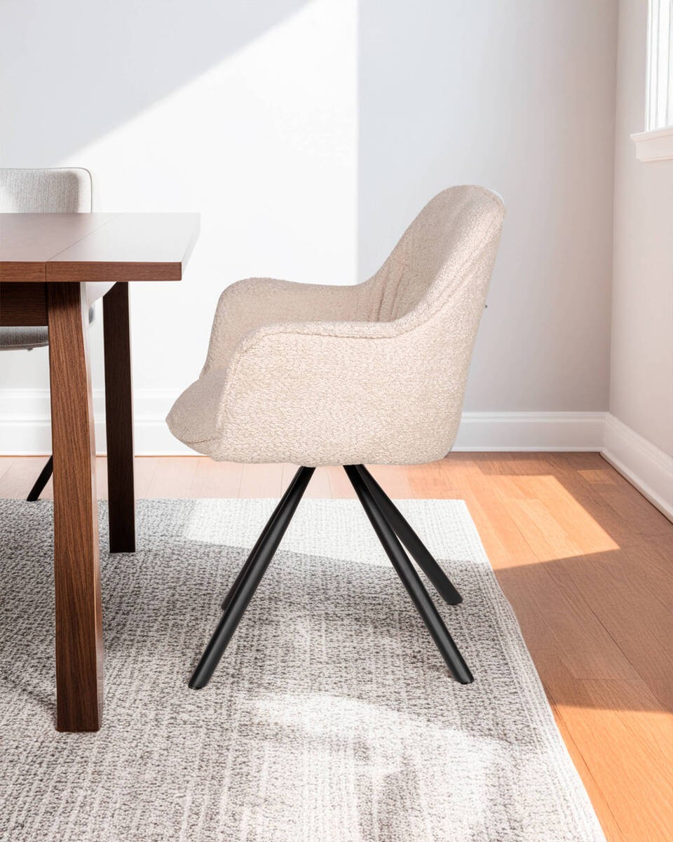 Versatilidad y funcionalidad, fusionando lo contemporáneo con el estilo escandinavo. Equipada con un sistema giratorio de 180º, es perfecta para comedores modernos y escritorios.