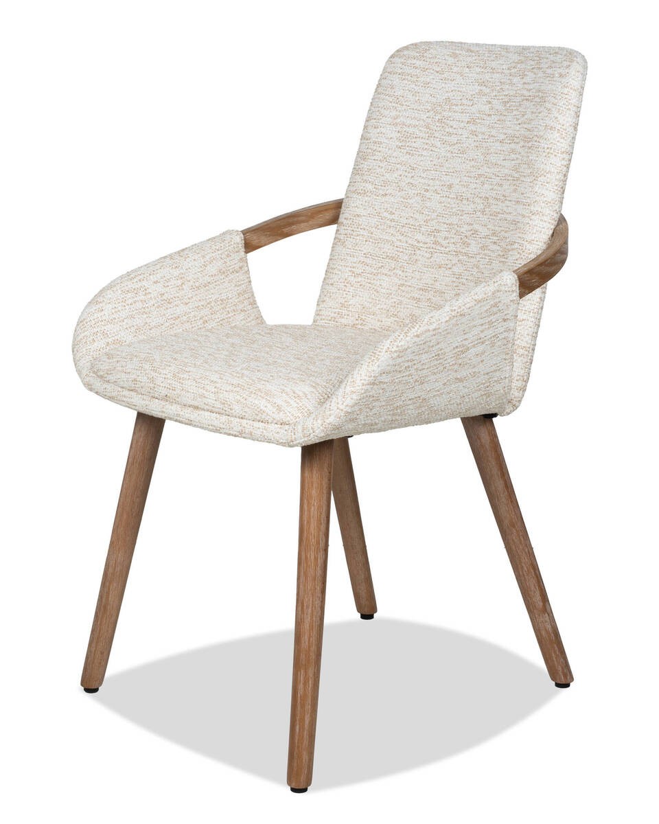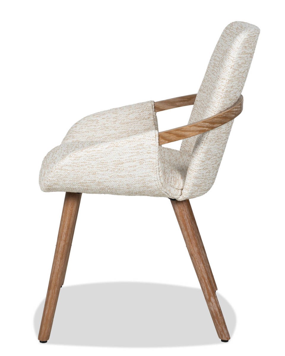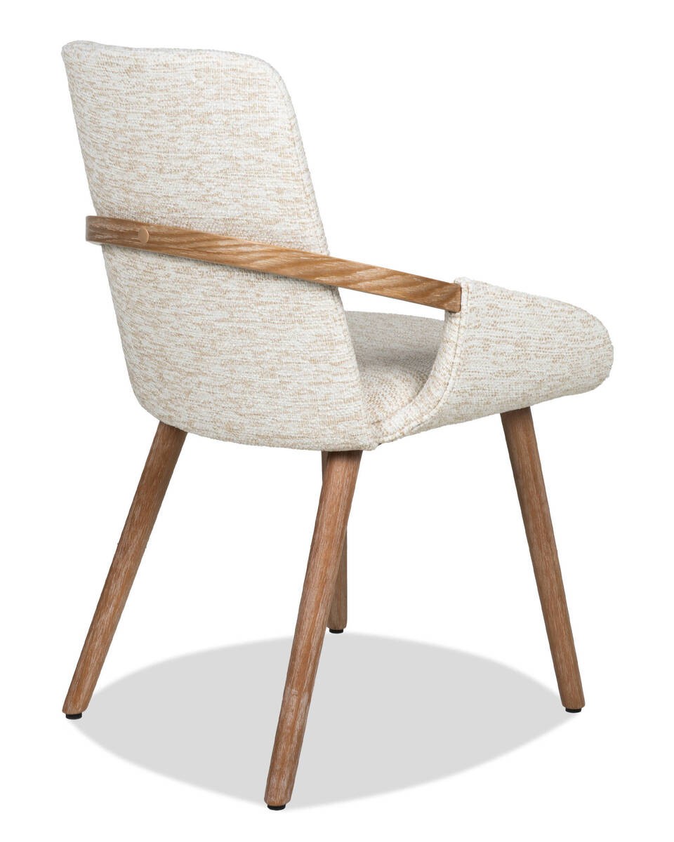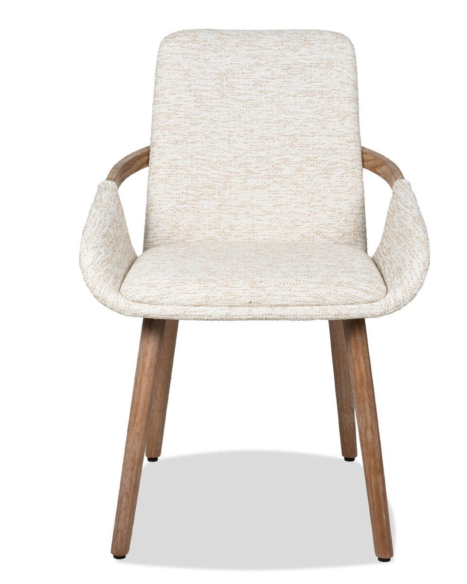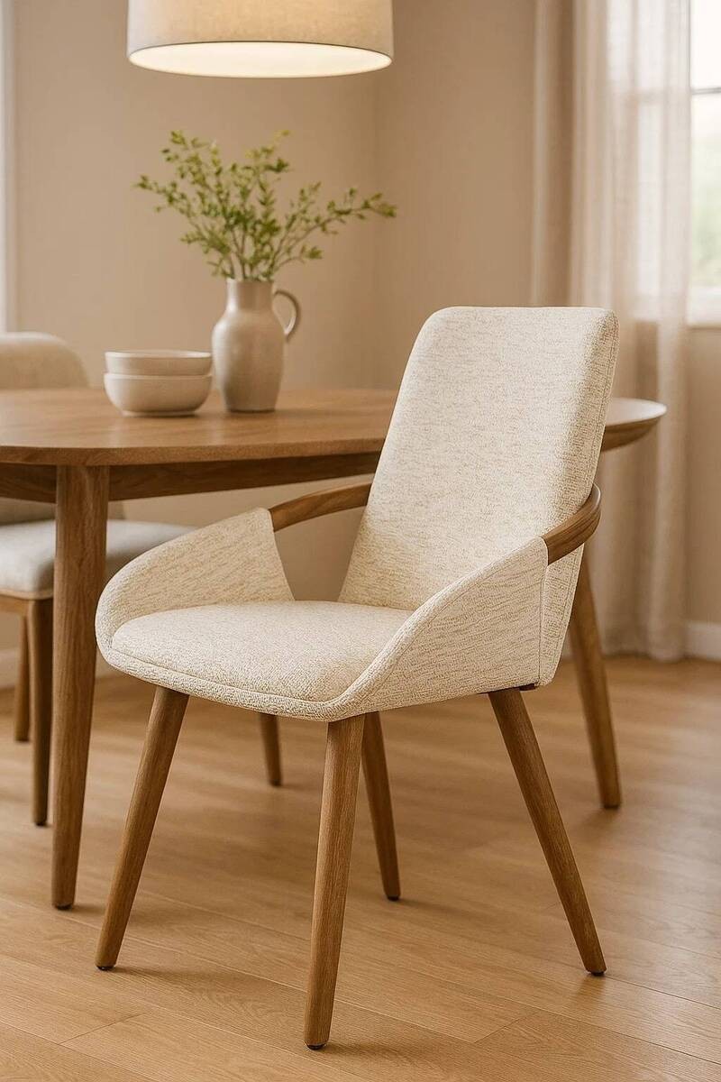 Avana aporta calidez y confort con su estructura completamente tapizada en tejido beige de tacto suave y respaldo envolvente. Su silueta acogedora se combina con brazos abiertos y patas de madera de haya con acabado blanqueado, logrando un equilibrio entre funcionalidad y estilo nórdico. Ideal tanto para comedores como para zonas de reunión informales.