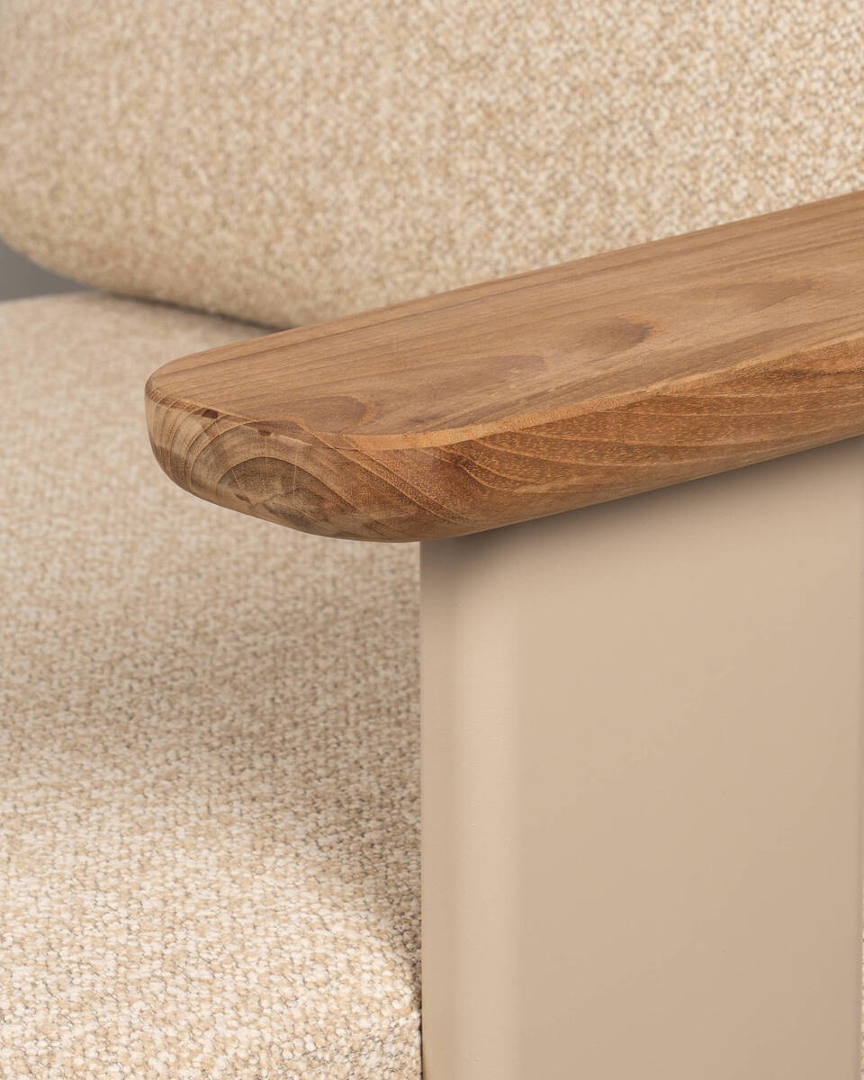 - Reposabrazos: Detalle en madera natural
