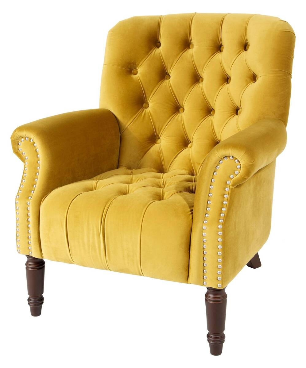 ¡Renueva tu espacio con este elegante sillón de estilo clásico que no pasará desapercibido en la decoración de tu salón! Tapizado en terciopelo color mostaza dispone de un amplio respaldo con reposabrazos asegurándole el máximo confort. ¿Lo que más nos gusta de él? El minucioso trabajo del capitoné, el detalle de las tachuelas en color plata envejecida y la combinación de sus originales patas en madera de nogal.