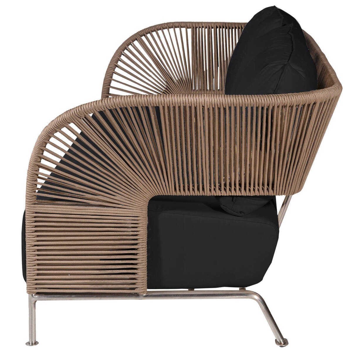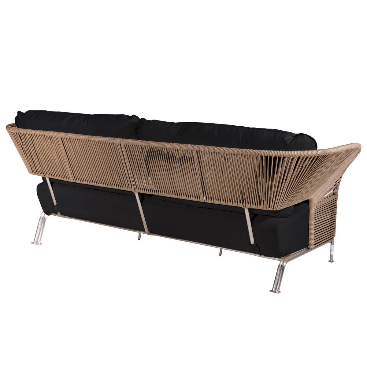 SOFÁ TRES PLAZAS EXTERIOR CUERDA TRENZADA COLOR ARENA - TELA GRIS ANTRACITA (231x90x72cm)