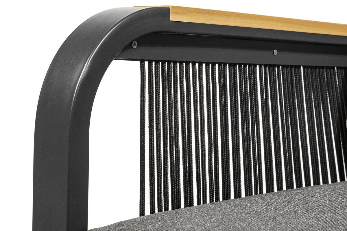 Gracias a su diseño moderno que mezcla el aluminio en color gris antracita para su estructura y la madera de teca para los reposabrazos junto con el detalle de la cuerda trenzada a este sillón de jardín no le falta originalidad.