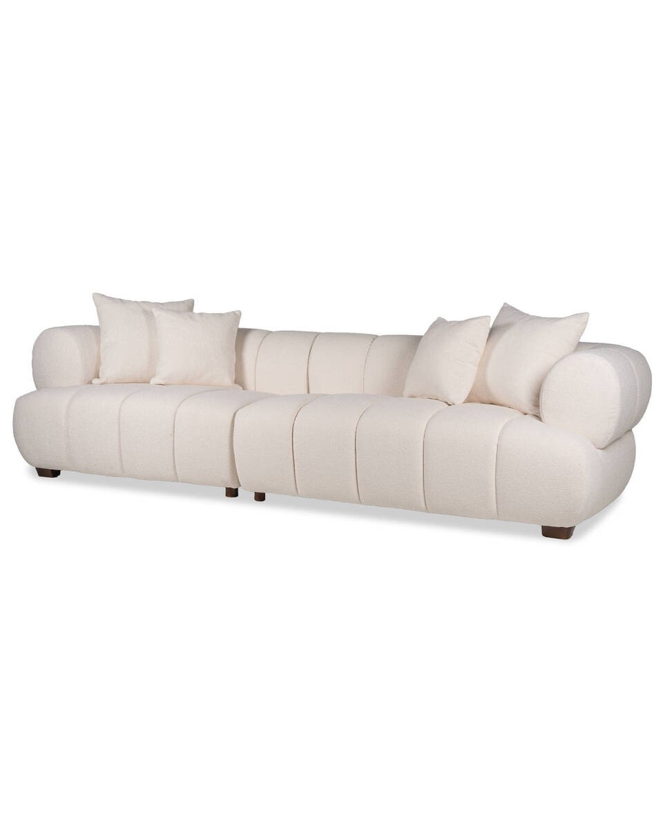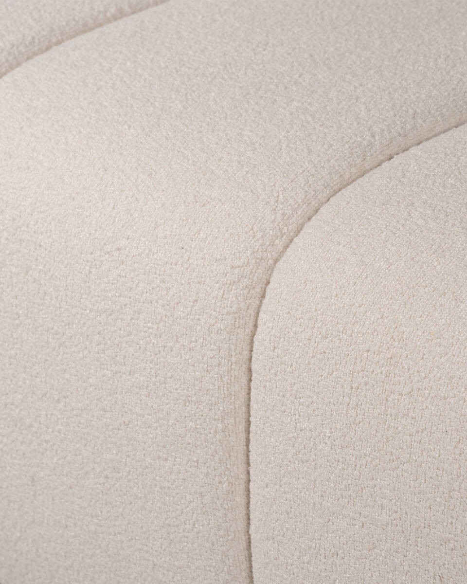 Un diseño vanguardista que destaca por su elegante forma ondulada que evoca la fluidez de las olas. Su tapizado en un sofisticado tono blanco marfil añade un aire moderno y armonioso, ideal para espacios contemporáneos que buscan destacar con estilo.