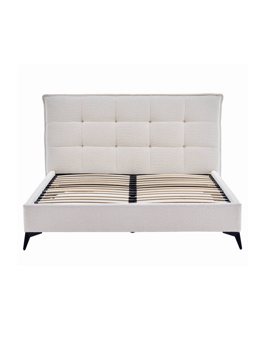 Cama Nara tapizada 180x200 cm con cabecero acolchado en boucle blanco roto