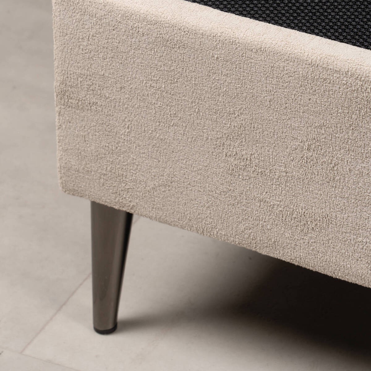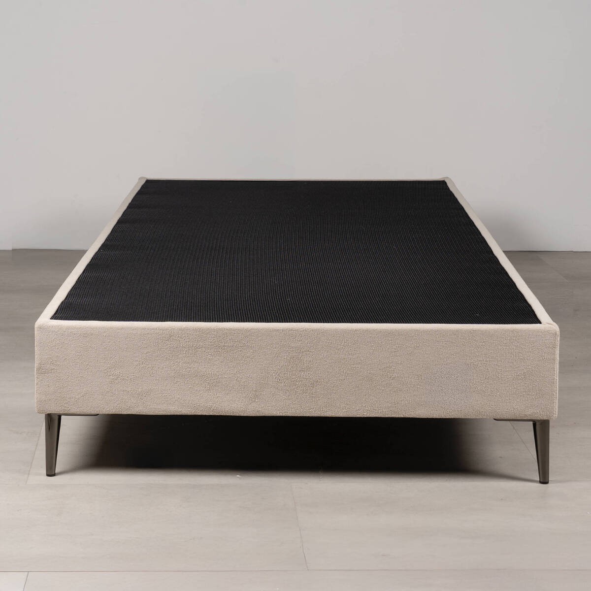 Base de cama Liria tapizada color piedra con patas metálicas cromadas 90x200cm