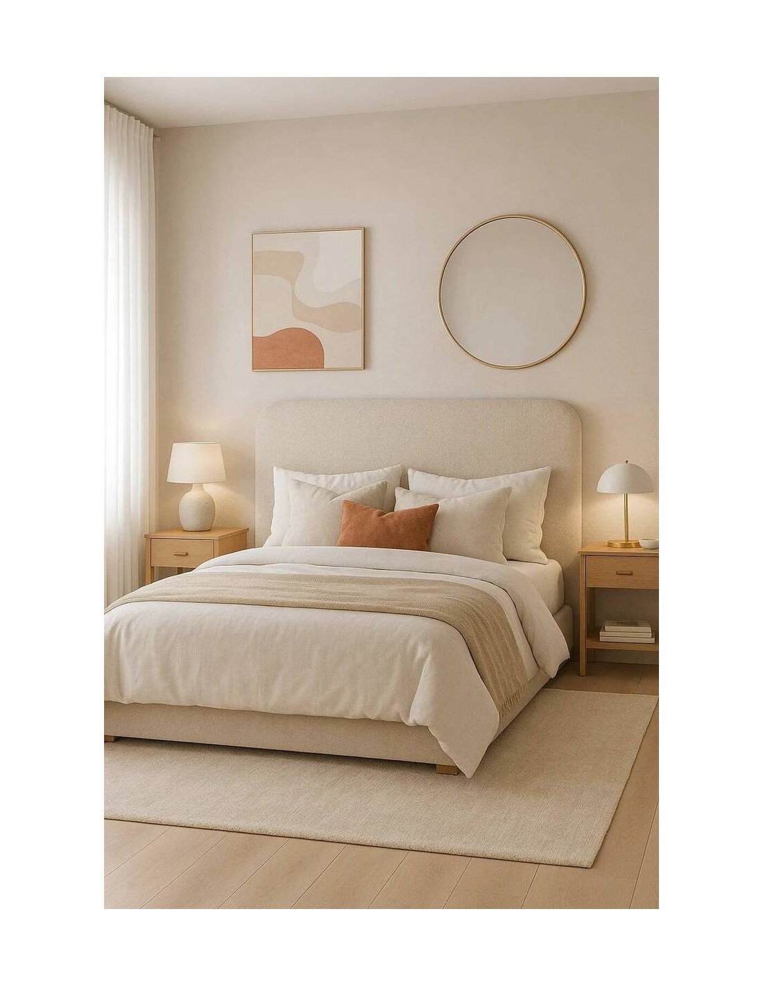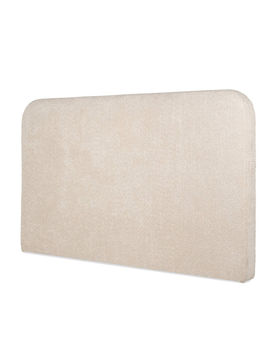 Transforma tu dormitorio con este cabecero tapizado en tejido bouclé beige. Su diseño envolvente y su textura suave aportan calidez, elegancia y confort al espacio de descanso. Ideal para camas dobles de gran formato (180 cm), se integra fácilmente en ambientes modernos y relajantes.