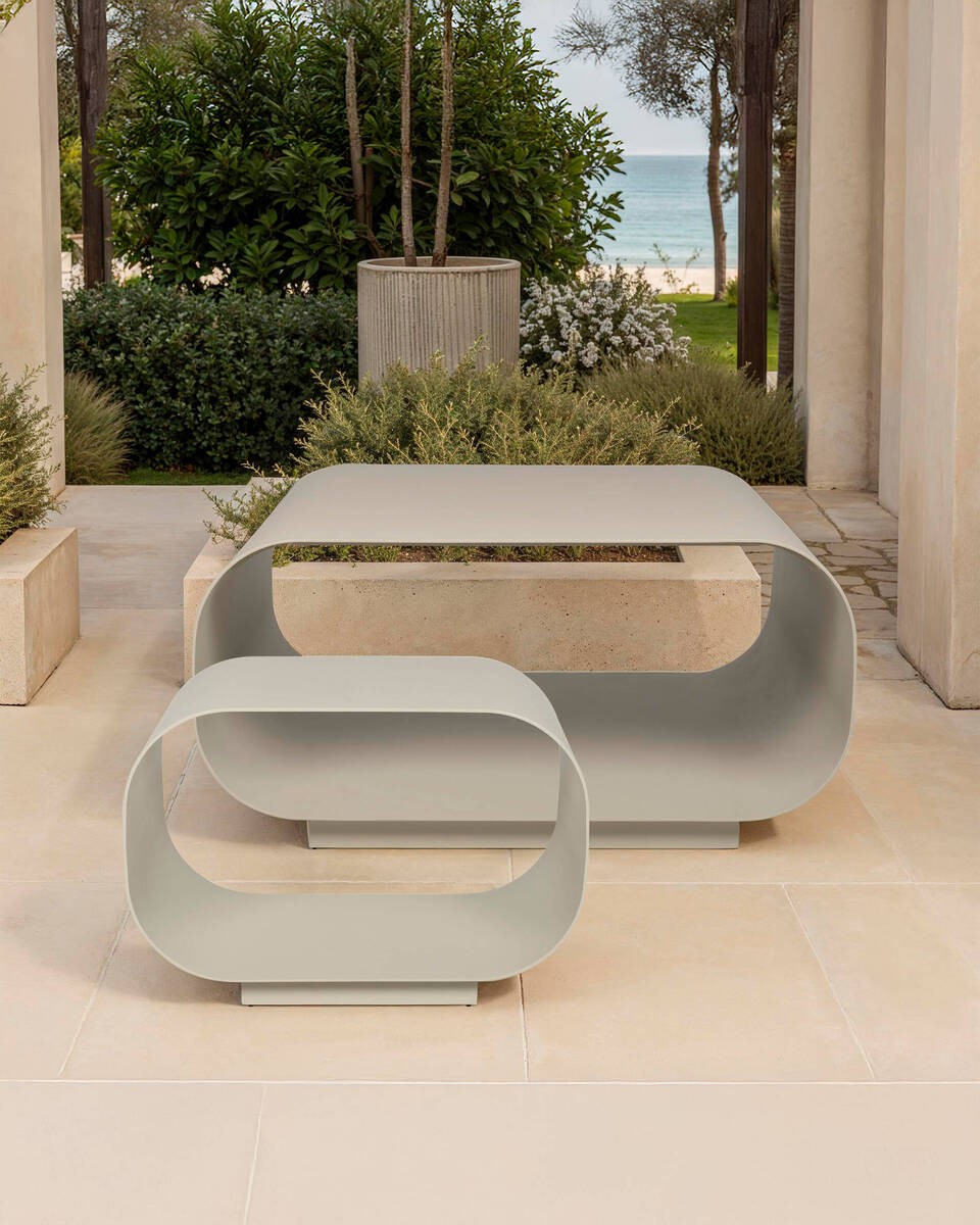 Con un diseño envolvente de líneas curvas y base ligeramente elevada, esta mesa de centro se convierte en un elemento escultórico para tu zona de exterior cubierta. Su estructura de aluminio en acabado gris seda combina resistencia, ligereza y elegancia, haciendo que sea fácil de integrar en diferentes estilos decorativos. La cavidad central permite almacenamiento o decoración con un toque moderno y funcional.