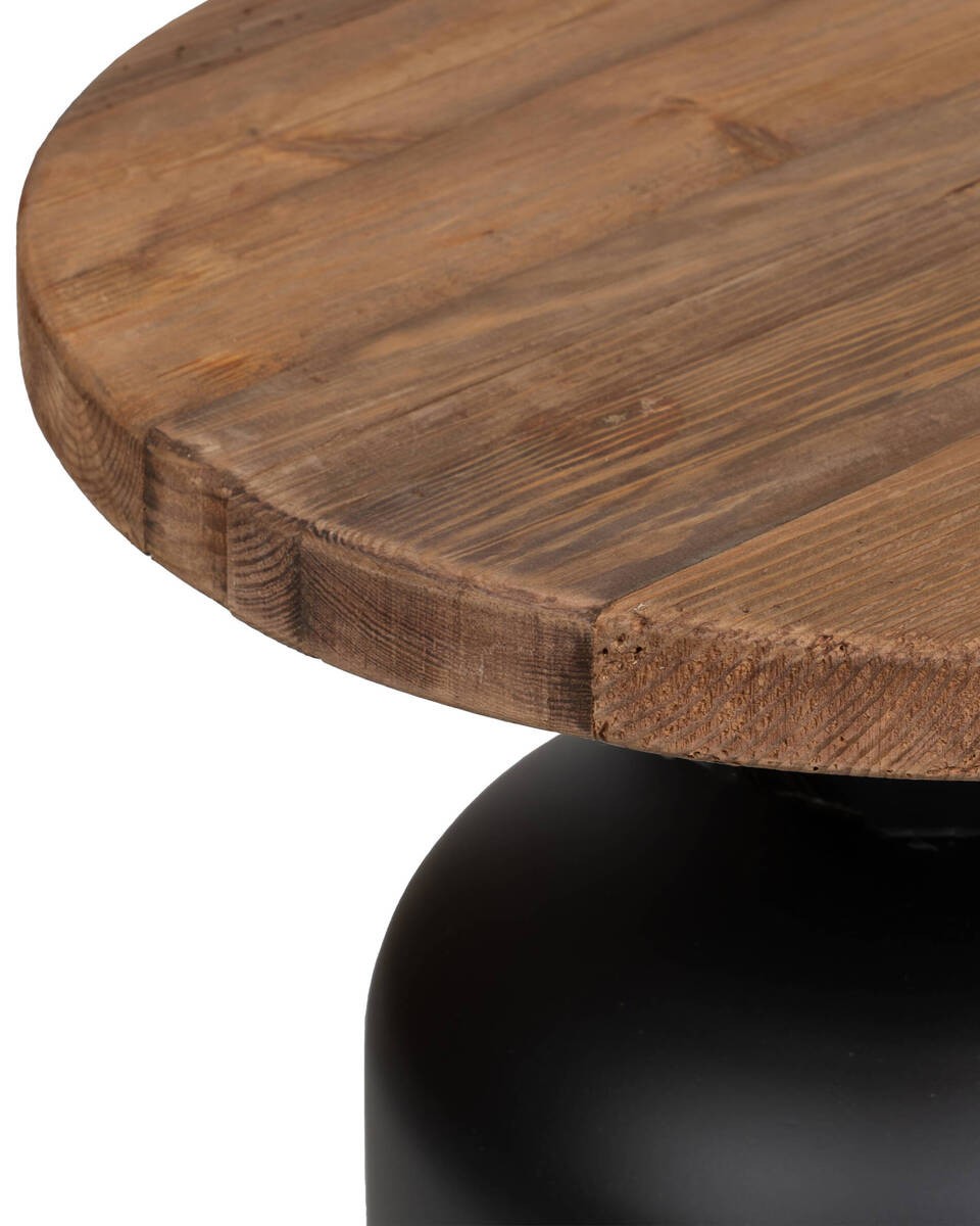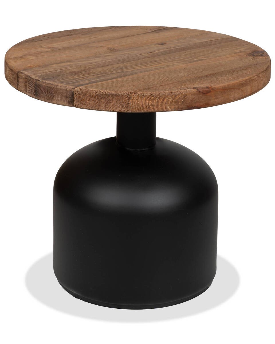 Mesa auxiliar aurona con tapa de madera reciclada y base negra 49x45cm