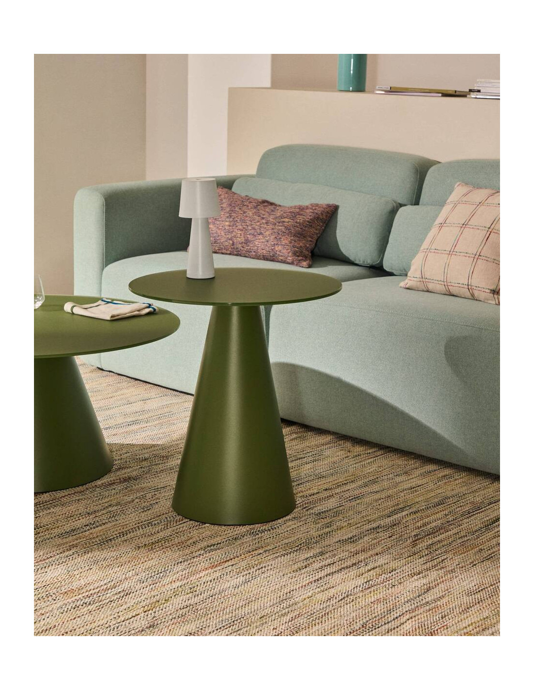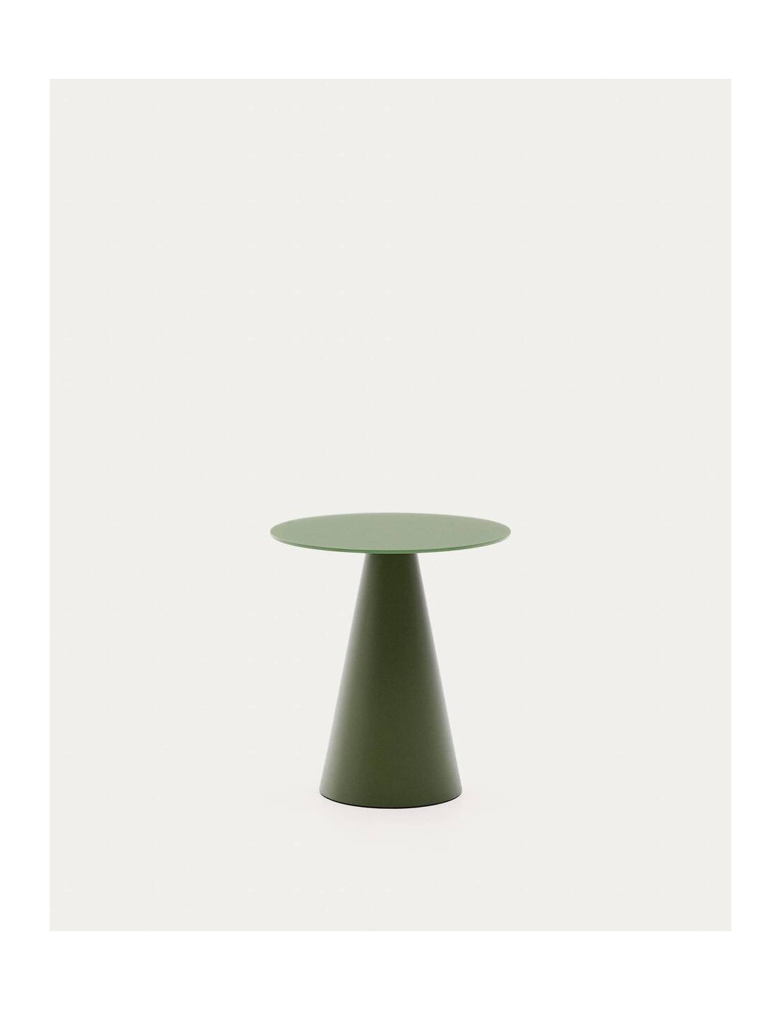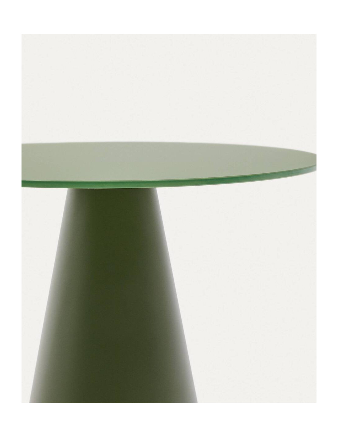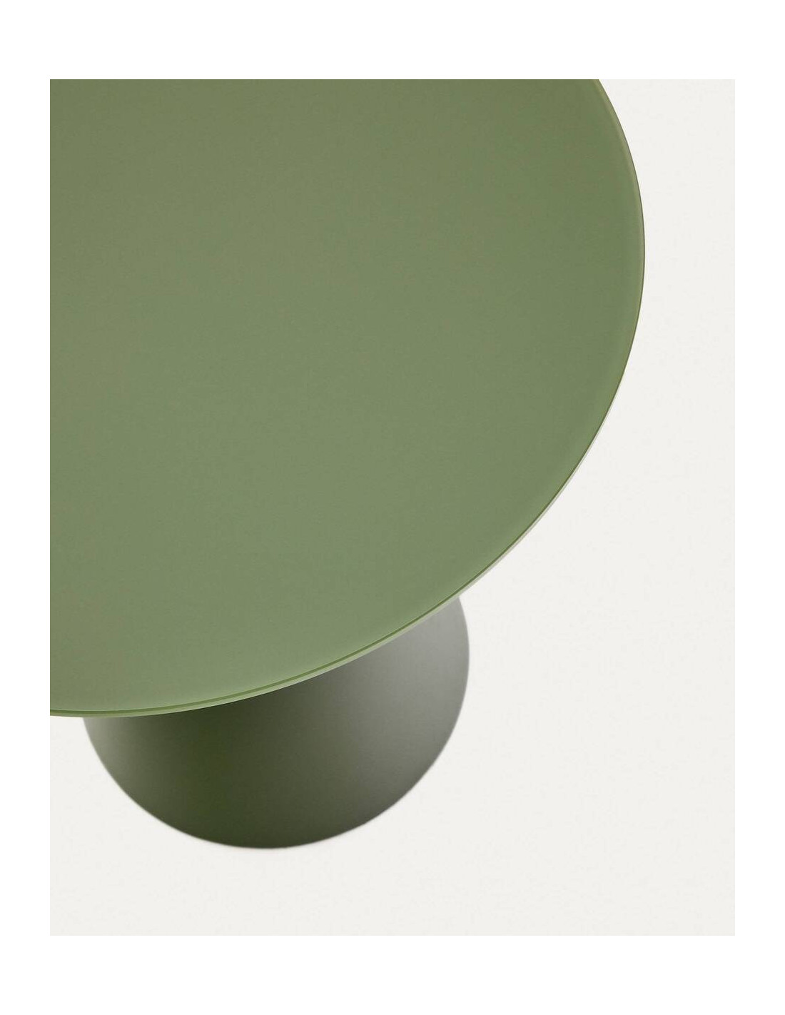 No hay productos en tu carritoMesa auxiliar Wilshire cristal templado glaseado y acero acabado pintado verde mate Ø50cm