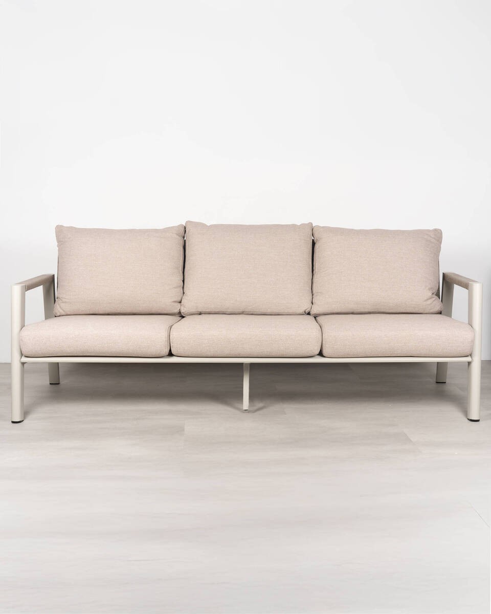 Sofá Flora de aluminio 3 plazas con cojines beige