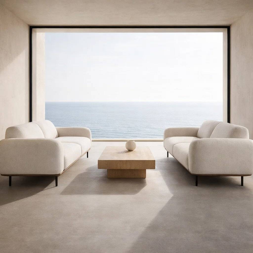 Eleva tu ambiente de estar con este sofá con textil de borreguillo color crudo, hecho 100% de poliéster. Destaca por su curvilíneo diseño en su respaldo y reposabrazos, sujetado por una estructura de cinco patas de hierro y madera.