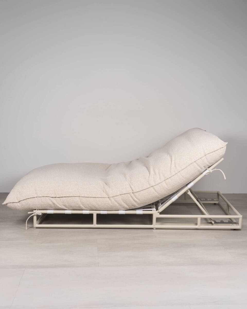 El Coral Lounger es una tumbona de líneas suaves y diseño generoso, perfecta para crear un espacio de relax en exteriores. Su tapizado en tejido outdoor aporta resistencia y comodidad, mientras que la estructura de aluminio garantiza durabilidad y ligereza.